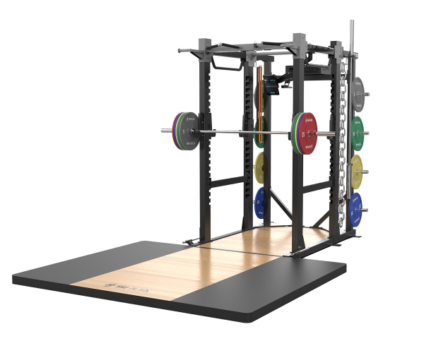 舒华高端综合框式力量训练器SH-G8903功能区:杠铃片整组挂架、万向炮筒、举重杆保护架、单杠架、双杠架、大飞鸟功能
